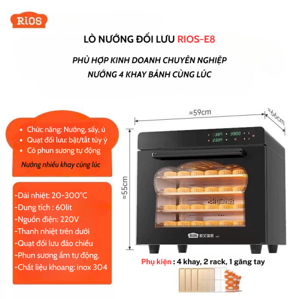Lò nướng đối lưu phun sương RIOS E8 (dung tích 60lit) phù hợp kinh doanh