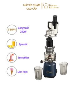 Máy Ép Hoa Quả Chậm Dream Kitchen – Ép hoa quả, trái cây, rau củ, Làm Kem, Làm Sữa Hạt, Sinh Tố. Ép kiệt bã tới 98%, thiết kế dễ dàng tháo lắp, màu sắc sang trọng và đặc biệt không chiếm nhiều diện tích. Dream Kitchen sự lựa chọn tinh tế cho căn bếp nhà bạn